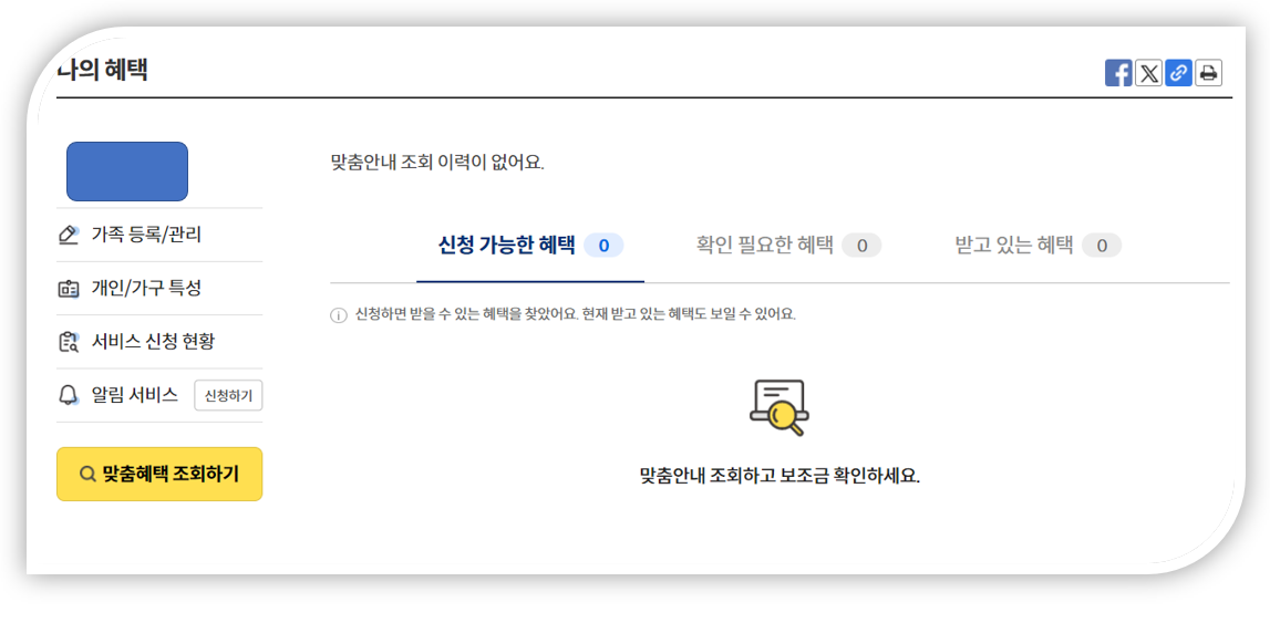 ๊ฐ์กฑ๋ฑ๋ก์ ํ๊ณ ๊ฐ์กฑ์ ๋ณด๋์ ์ ๊ณต์ ํด์ผ ๋ง์ถคํํ์ ์กฐํํ ์ ์์ต๋๋ค.