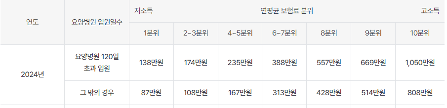 ๋ณธ์ธ๋ถ๋ด์ํ์ ๋ ํ์๊ฐ ์ผ์ ๊ธฐ๊ฐ ๋์ ๋ถ๋ดํ๋ ์๋ฃ๋น๊ฐ ์๋์ ๋ฐ๋ผ ์ ํด์ง ์ํ์ก์ ์ด๊ณผํ ๊ฒฝ์ฐ, ๊ทธ ์ด๊ณผ๋ถ์ ๊ตญ๋ฏผ๊ฑด๊ฐ๋ณดํ๊ณต๋จ์ด ๋ถ๋ดํ๋ ์ ๋์ ๋๋ค.